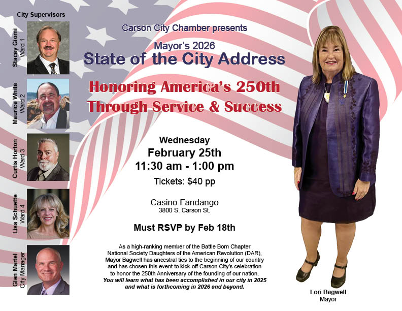 Please list attendees name in the discription box. Or email Table of 8 attendees list to admin@carsoncitychamber.com